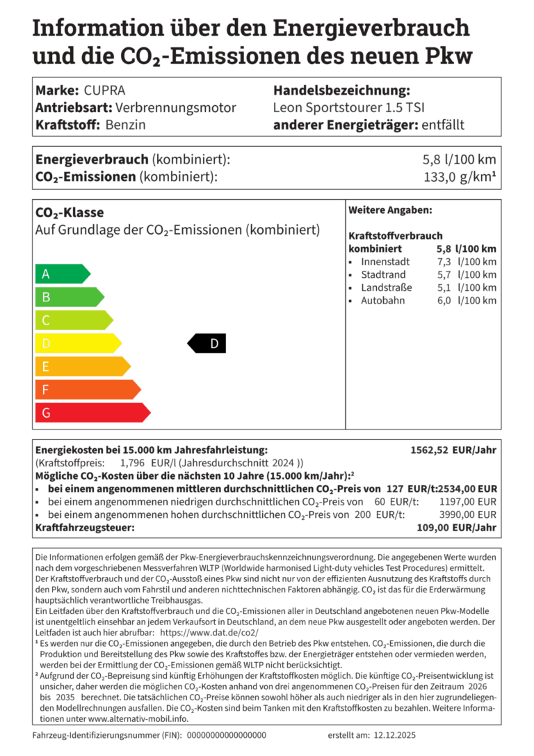 z.B. CUPRA Leon Sportstourer 1.5 TSI 110 kW (150 PS)